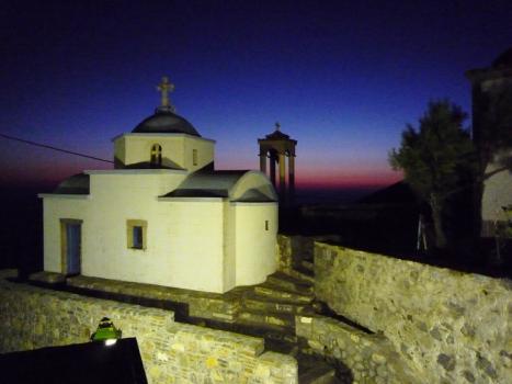 Cargados de energía después de la tarde en las playas de Diafani, salimos por un sendero que durante kilómetros nos llevará por lo alto de la costa con vistas hacia la isla de Rodas, hasta que después de unas 4 horas llegamos al punto más al norte, la pequeña aldea pesquera de Tristomo, el último lugar habitado de la isla. Hace años tenía solo dos habitantes fijos, una pareja de ancianos que vivían casi en aislamiento absoluto y ajustaban su calendario gracias a algún amante de las montañas que pasaba por Tristomo. Hoy en día ya no están viviendo allí pero aun así la pequeña iglesia sigue abierta y en muy buen estado para dar la bienvenida a los pocos visitantes de la aldea.