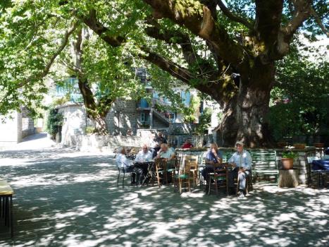 Desayunamos en el refugio y salimos sobre las 8:30. La etapa de hoy empieza con una bajada para subir después a bordear las paredes verticales de roca caliza. Seguimos hacia los altos pastos de la zona y nos adentramos en bajada en un largo valle hasta llegar a la plaza de un pueblecito donde nos refrescamos bajo la sombra de una parra centenaria que cubre la terraza de la taberna. La miniván nos espera para llevarnos al cómodo hotel de la localidad de donde salimos el día anterior y donde la gentileza y la amabilidad de los dueños siempre está presente. Cena y alojamiento -