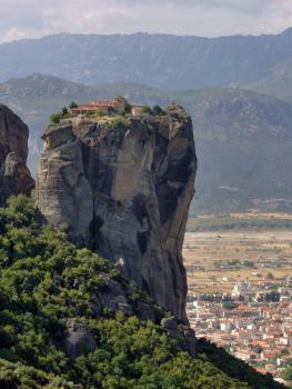 Desayunamos pronto y salimos con la miniván hacia Kalambaka. Después de cerca de 3 horas de viaje, llegamos al centro de la ciudad situada entre las famosas torres de roca de Meteora coronadas por sus monasterios. Salimos a pie sin mochilas para visitar la antigua y particular iglesia del siglo IX y seguiremos a pie hacia el Monasterio de la Santísima Trinidad. Ya estamos en lo alto y las vistas que se abren hacia el valle y los demás monasterios encima de las rocas son impresionantemente maravillosas.