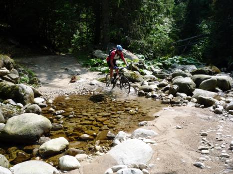Si parte verso il rif.Makedonia-2166m. Si supera la quota più alta di tutto l’itinerario - un passo di montagna a 2185m. di altitudine . La salita è pedalabile,tranne un tratto di strada rovinata dal torrente, dove dobbiamo spingere le bici per ca. 2km. Giunti al rif. Makedonia,ci aspetta una lunga discesa di ca. 20km., breve salita e di nuovo in discesa fino al paesino di Bania . Da qui a Bansko mancano ca. 6km.di leggera salita.