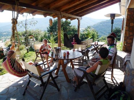 Si affrontano le lunghe salite e altrettanto lunghe discese sulle montagne della Grecia. L’aria fresca dei boschi di faggio,sotto l’ombra dei quali stiamo pedalando ci da la freschezza e ci aiuta a non sentire le salite così stancanti. Il clima sulla penisola Balcanica è molto ventilato e anche se siamo in piena estate, l’afa è completamente assente.