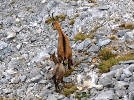 In discesa dalla cima all’inizio prendiamo la strada di salita e dopo un pò giriamo a sinistra per attraversare sotto le cime di Mitikas e Stefani e raggiungere il Rif.Kakalos. Così la nostra visita della montagna sarà completa.