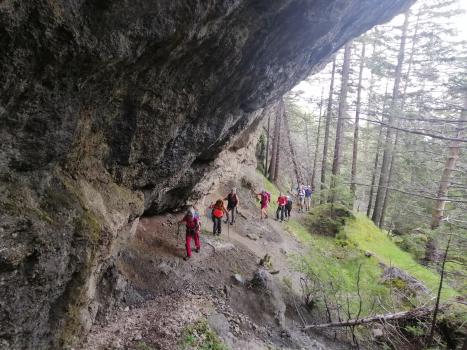 Percorso di durata 4-5 ore di cammino. Dislivello di ca. 650m.salita e di ca. 400m. discesa. Difficoltà - EE. C’è un tratto di corda fissa di 3m. per tenersi con la mano in caso di umidità del terreno. Non ci sono i passaggi esposti. Partendo in pullmino per una ventina di chilometri, l’autista ci lascerà a un posto concordato, da dove inizieremo a camminare. Seguendo una strada sterrata in salita e attraversando prati e pascoli, ci portiamo sotto l’ombra di una pineta. Proseguendo in salita, il sentiero che stiamo seguendo ci porterà in un avventuroso e piacevole percorso. Arrivati sulla cima di una montagna coperta da bosco di abeti rossi, ascolteremo il racconto della nostra guida, che mentalmente ci trasferisce nei secoli passati della storia bulgara. Scendendo dalla cima, il sentiero ci porterà a visitare un fenomeno della natura, che ci lascia con il fiato sospeso. Non lontano ci aspetterà il nostro pullmino, per riportarci in albergo. Cena e pernottamento. -