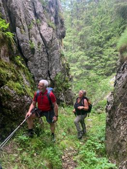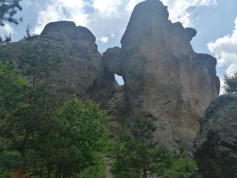 Percorso di durata 4-5 ore di cammino. Dislivello di ca. 650m.salita e di ca. 400m. discesa. Difficoltà - EE. C’è un tratto di corda fissa di 3m. per tenersi con la mano in caso di umidità del terreno. Non ci sono i passaggi esposti. Partendo in pullmino per una ventina di chilometri, l’autista ci lascerà a un posto concordato, da dove inizieremo a camminare. Seguendo una strada sterrata in salita e attraversando prati e pascoli, ci portiamo sotto l’ombra di una pineta. Proseguendo in salita, il sentiero che stiamo seguendo ci porterà in un avventuroso e piacevole percorso. Arrivati sulla cima di una montagna coperta da bosco di abeti rossi, ascolteremo il racconto della nostra guida, che mentalmente ci trasferisce nei secoli passati della storia bulgara. Scendendo dalla cima, il sentiero ci porterà a visitare un fenomeno della natura, che ci lascia con il fiato sospeso. Non lontano ci aspetterà il nostro pullmino, per riportarci in albergo. Cena e pernottamento. -